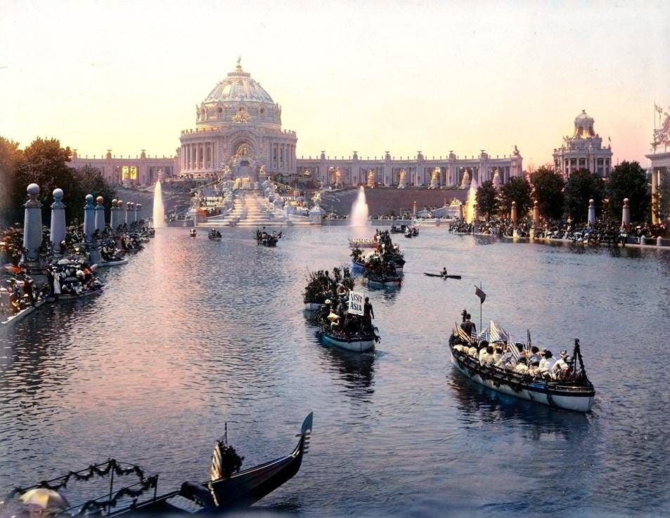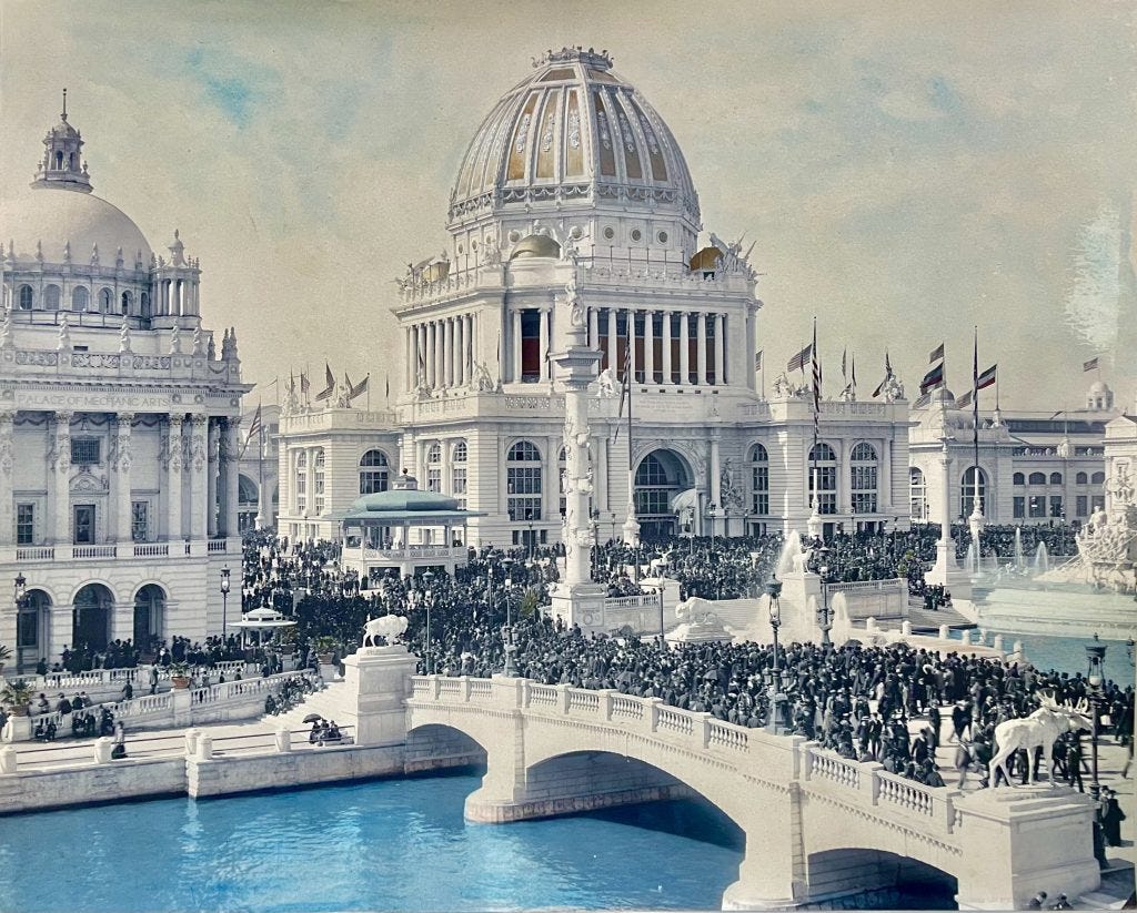 I often return to this photograph — it shows the Administration Building during the 1893 Chicago World’s Fair. The scale, the ambition, the sheer beauty of it. When you see something like this standing in America in the late 1800s, it feels like discovering ruins from another civilization entirely…