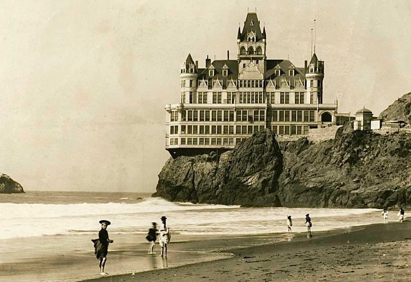 After the original Cliff House was destroyed by fire in 1894, Adolph Sutro rebuilt it from the ground up just two years later as a seven-story Victorian chateau, earning it the nickname “the Gingerbread Palace.”