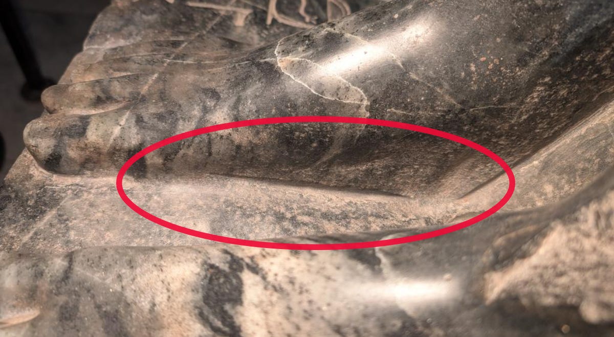 And then there are the marks in the stone that suggest a tool slipped or cut too deep — the kind of error that, with abrasive sand and stone hammers, would require sustained, concentrated effort to produce accidentally. They raise questions that the conventional explanation has not yet fully answered:
