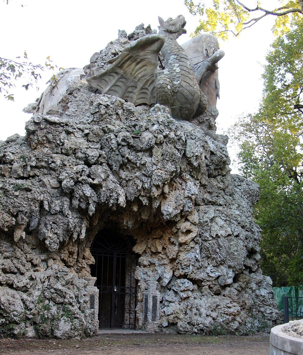 Francesco I de’ Medici, Grand Duke of Tuscany, used to sit inside the head and fish through one of the eye slits. At night, with torches burning inside, the eyes glowed in the dark…