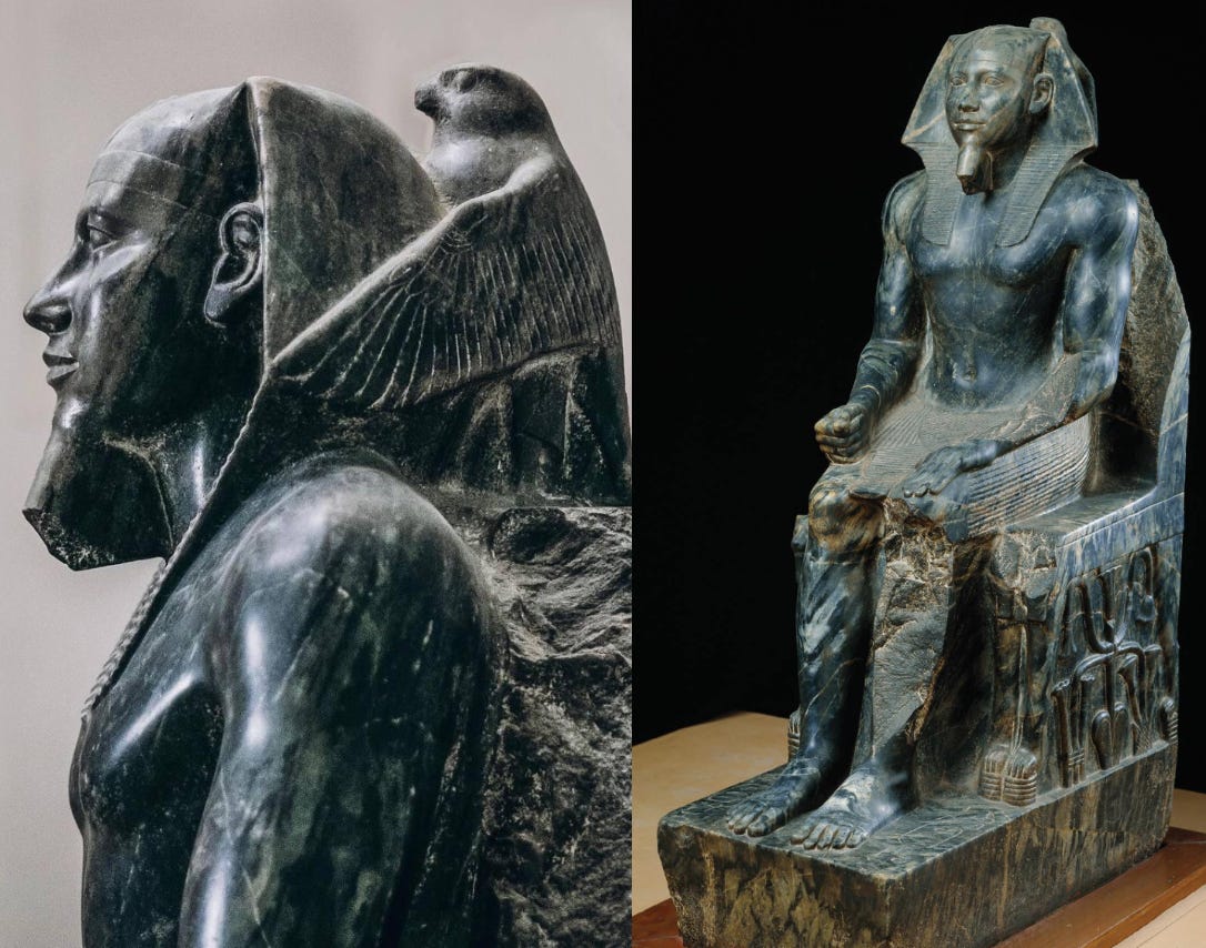 Look closely at the falcon. The god Horus, wings spread behind Khafre’s head, is carved with a spatial understanding of three-dimensional geometry and negative space that we would consider sophisticated today.