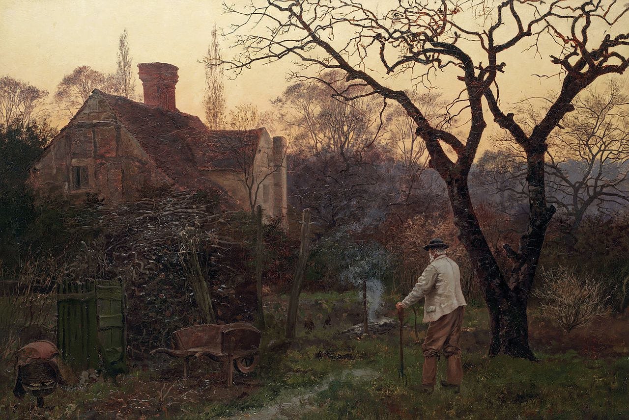A breathtaking piece by this remarkable English landscape painter, it draws you into the melancholy beauty of a late autumn day — where wind sighs through the fields and the scent of smoke drifts on the dimming air.