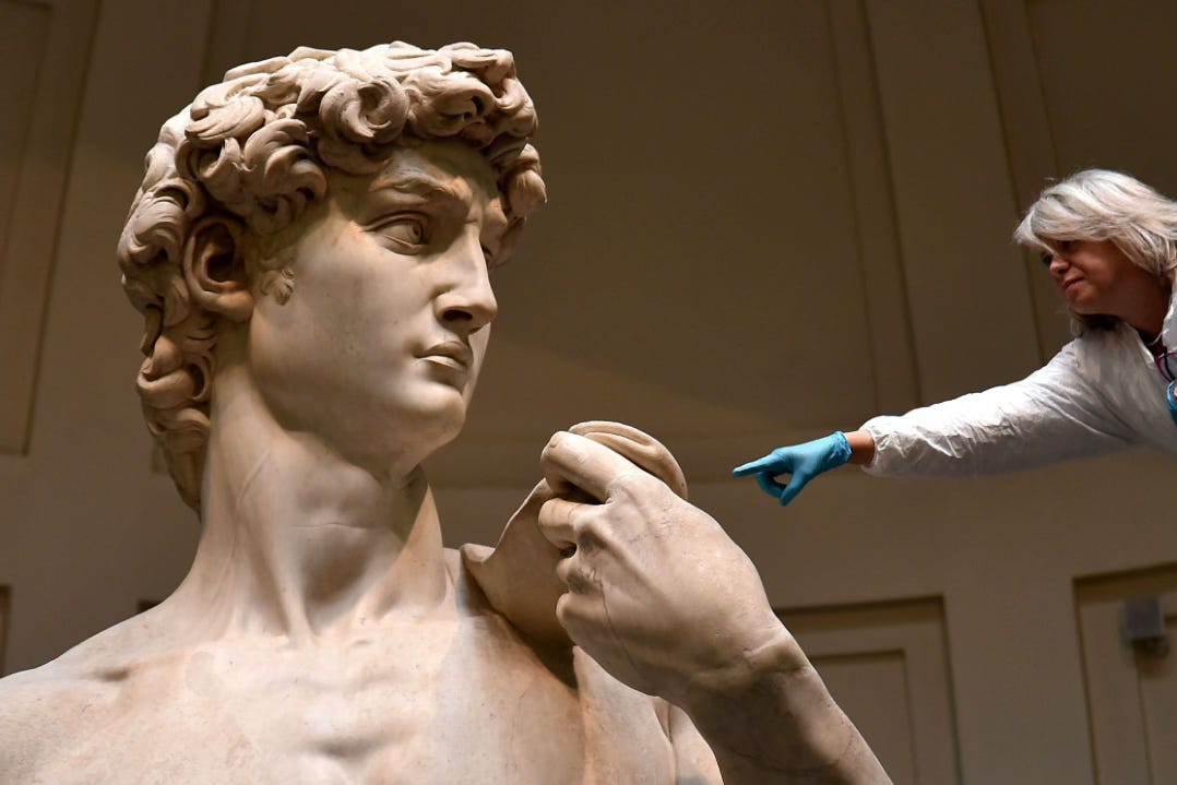 Originally commissioned as one of twelve statues for the roof of Florence Cathedral, David’s perfection made it too magnificent for that spot. It was instead placed in the public square in front of the Palazzo della Signoria, Florence’s civic seat. In 1873, it was moved to the Galleria dell’Accademia, where restorers dust it every 2–3 months.