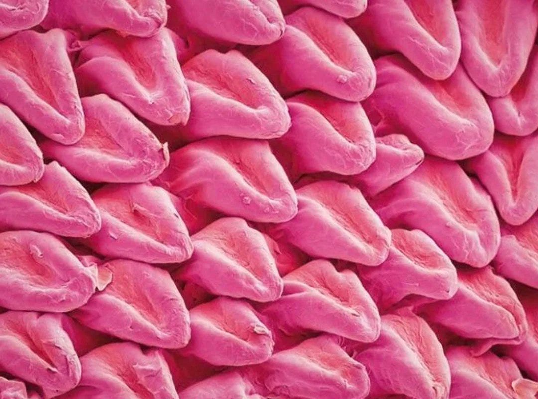 Under a microscope, a cat’s tongue looks like a forest of tiny little tongues: