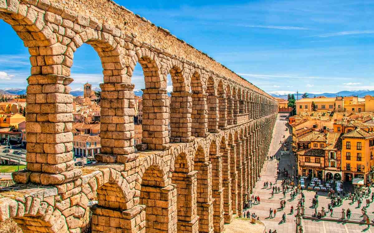 Sometime around the end of the first century AD, Roman engineers built an aqueduct in what is now Spain to carry water from the Frío River to the city of Segovia — a distance of roughly 17 kilometers. To do this, they erected a bridge of 167 granite arches across a valley, assembled from approximately 20,000 blocks without a single drop of mortar. The blocks are held in place entirely by their own weight and the precision of their fit — a technique the Romans called opus quadratum.