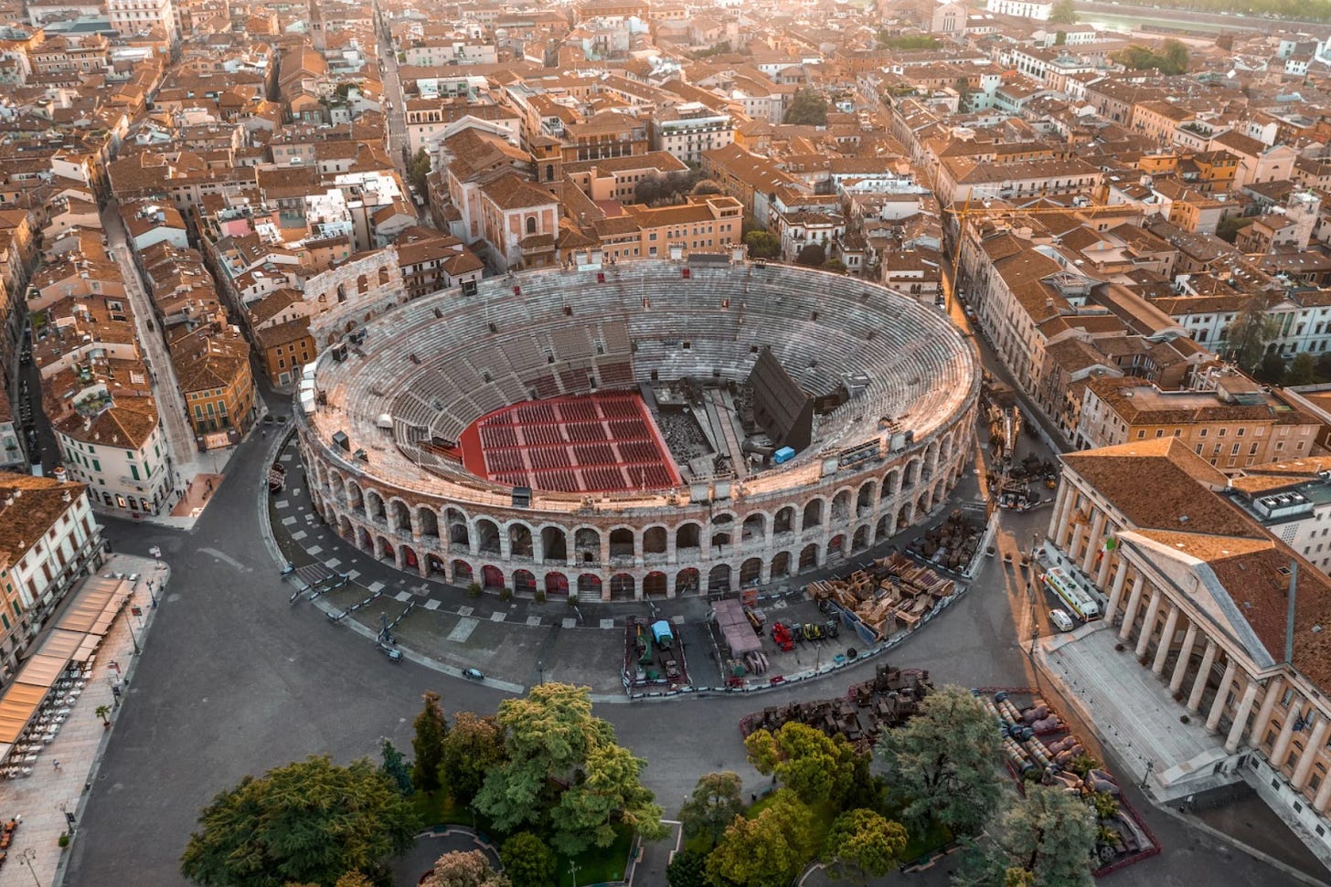 In 1913 — or so the legend goes — a tenor named Giovanni Zenatello was visiting the Arena with friends when they asked him to sing. Standing in the ancient amphitheater, he immediately understood what the acoustics could do. Whether the story is true or not, the result was the same: that summer, Verdi’s Aida was performed at the Arena for the first time, to a crowd that included Puccini, Mascagni, and Franz Kafka.